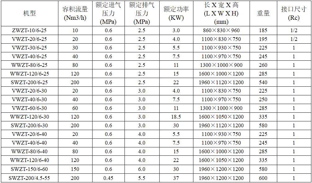Suction pressure: 0 ~ 1Mpa (G), exhaust pressure: ≤ 10 Mpa (G).